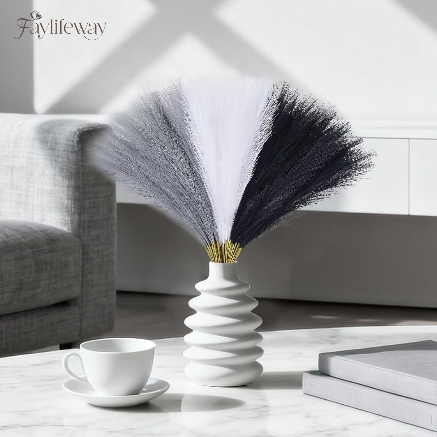 8 reviews for 50pcs Pampas Grass 17in, Black and White Pampas Grass Artificial Fluffy Vase Filler Flower Arrangement for Home Party Living Room Decor(Black & Grey & White)