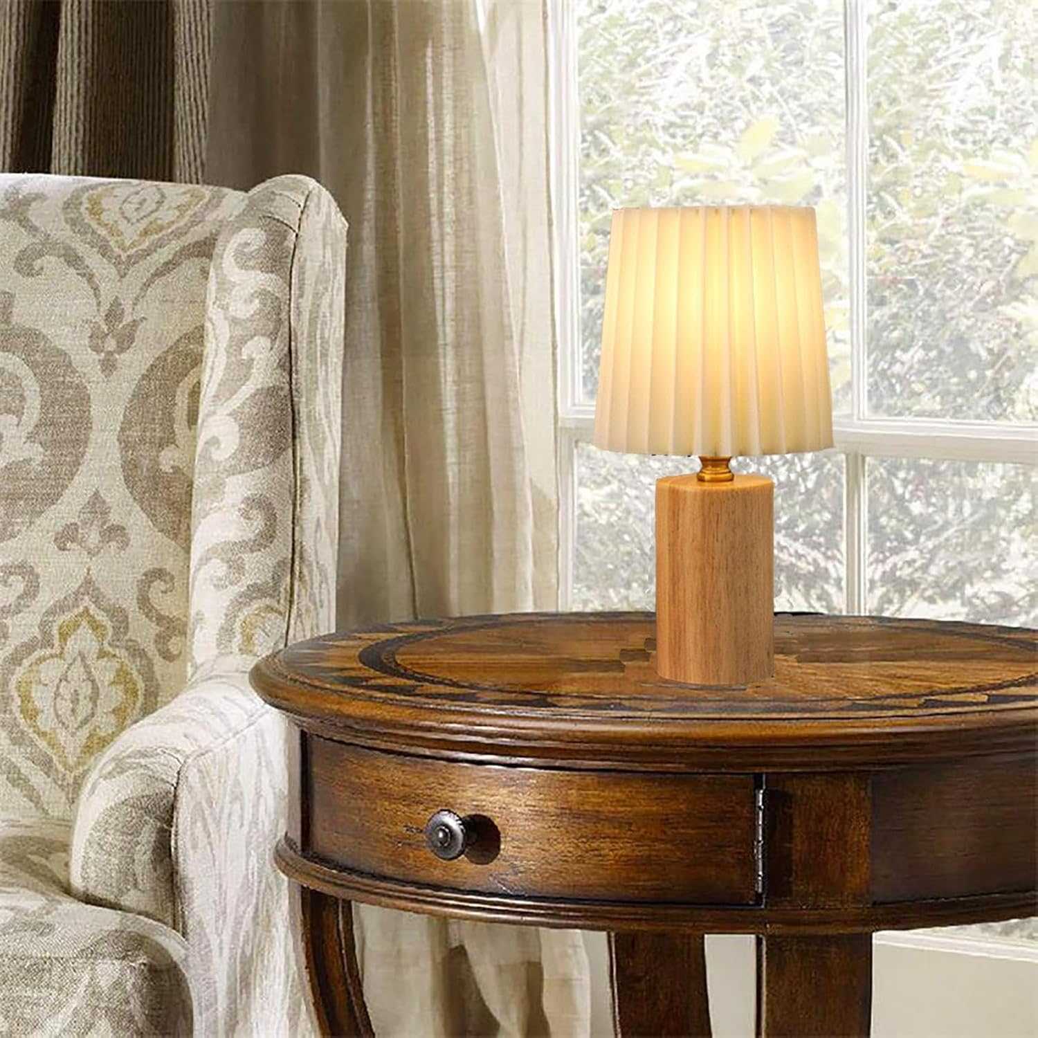 ✔Unique Patern Design: Pleated shade with wood base,nature and easy to match the decoration and furniture in your house.