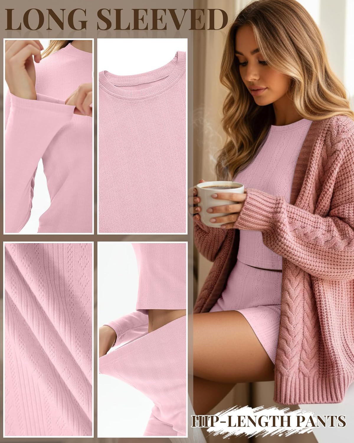 This Women’s 2 Piece Knit Lounge Sets is super cute and comfortable! According to my college-age granddaughter, the set offers a stylish look while prioritizing comfort and practicality. While the material isn’t as soft as she initially expected, she found the fabric to be exceptionally light and breathable. This makes it a pleasant choice for wearing to bed, especially during warmer nights. At 5 feet 2 inches tall and weighing 120 pounds, the extra small size was a perfect fit, neither too tight nor too loose. The shirt features a slightly cropped length, which pairs well with the high-waisted shorts. The shorts themselves strike a great balance—not too short, ensuring comfort and coverage without sacrificing style. After a trip through the washing machine, the lounge set maintained its shape and quality, showing no signs of wear or damage.Overall, the Set is an excellent choice for those wanting a cute, comfortable, and breathable outfit for lounging or sleeping. While it may not be the softest knit available (-1*), its lightweight feel and flattering fit make it a worthwhile purchase.