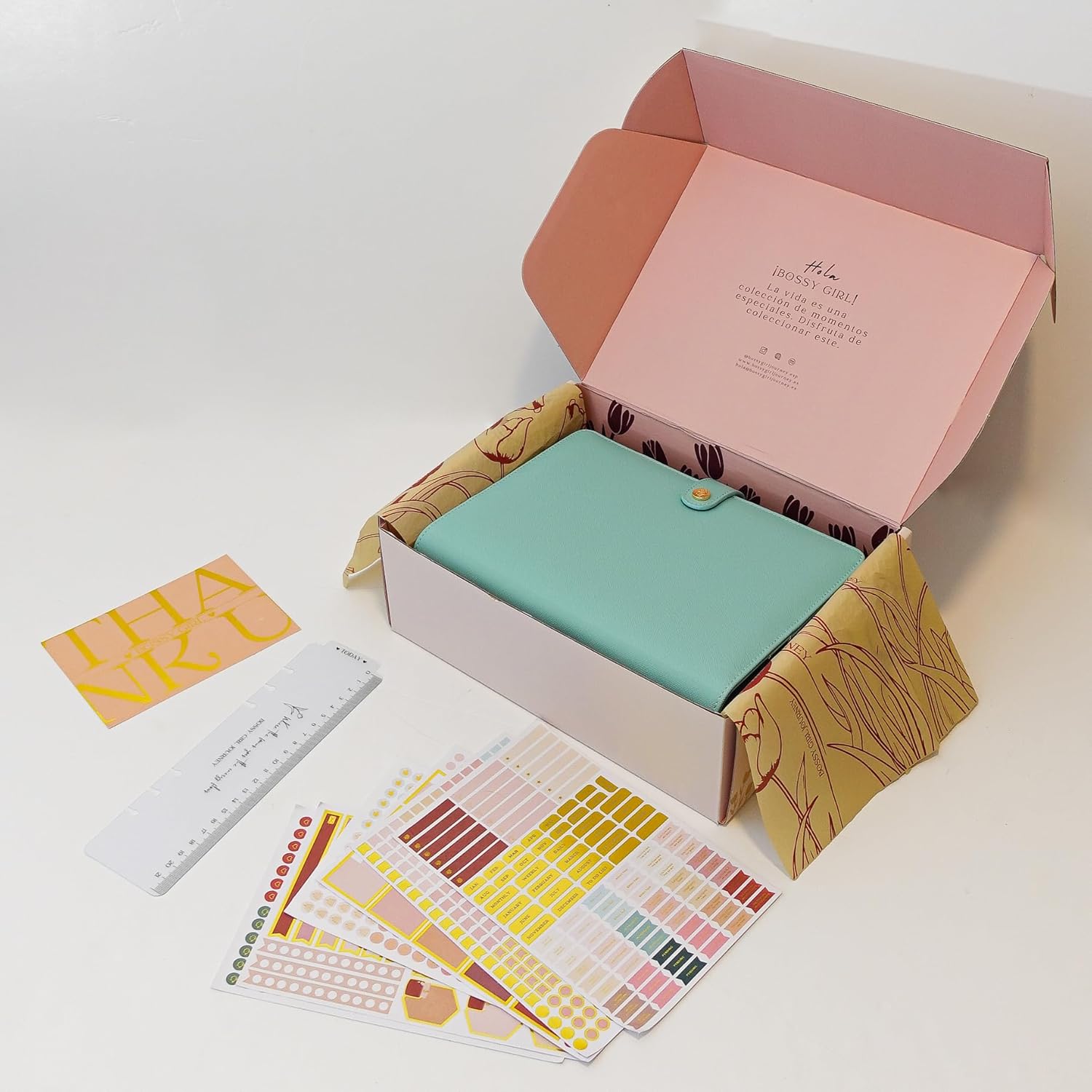 1 review for Bossy Girl Journey – A5 Daily Planner Binder – Undated Time Blocking Refillable Organizer for Women with 110gsm Paper, PU Leather Cover, Stickers, Dividers, Pen Loop, Gift Box – Goal Setting & Productivity (Pistachio)
