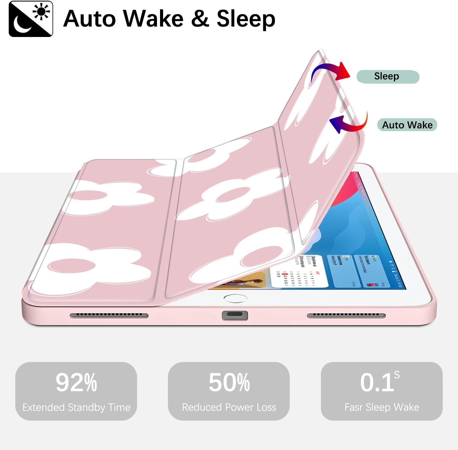[Auto Wake/Sleep] – Built-in magnetic strip automatically wakes or sleeps the device when opening and closing the cover, protecting and prolonging battery life.