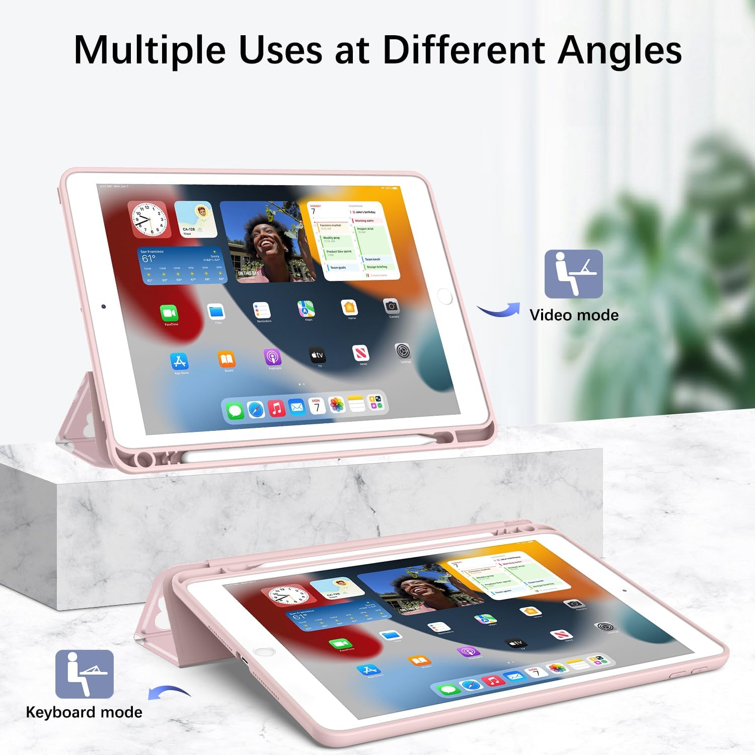 [Multi-Angle Stand] – Magnetic tri-fold stand creates a stable viewing and typing mode for iPad. The precise cutout design gives you full access to all features (buttons, speakers, camera, charging port).