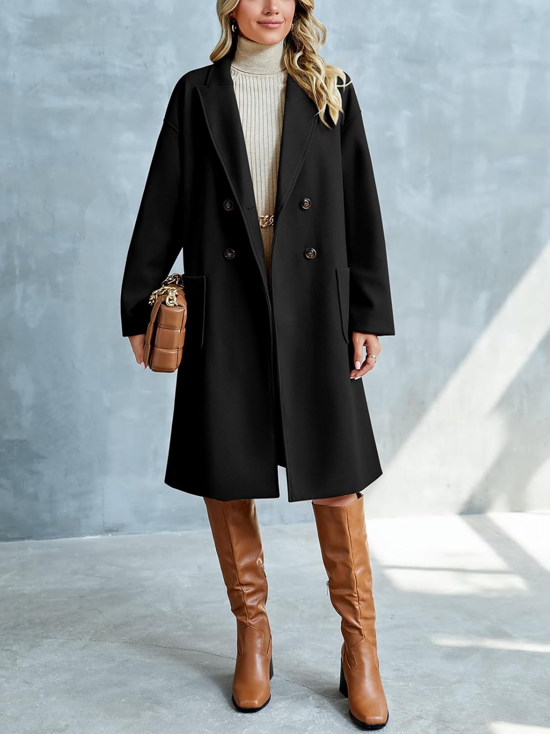 8 reviews for FSHAOES Womens Lapel Peacoat Winter Double-Breasted Outerwear Mid Long Jacket Casual Trench Coat
